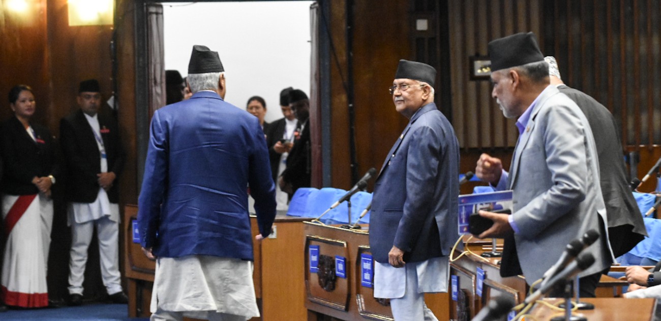 ओलीको संसद् सम्बोधनका बीचमा देउवाको आगमन, ‘गठबन्धन २०८४ सम्मै’ भन्ने प्रधानमन्त्रीको स्पष्ट संदेश