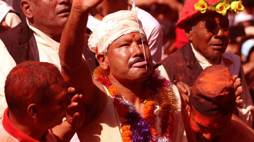 काठमाण्डौं/ भक्तपुरको मध्यपुर थिमि बोडेका ४९ वर्षीय बुद्धकृष्ण वाग श्रेष्ठले नवौं पटक जिब्रो छेडाएका छन् । तीन दिन अघिदेखि केही नखाई व्रत बसेका श्रेष्ठले शुक्रबार नवौ पटक जिब्रो छेडेका हुन्। व्रत बसेदेखि जिब्रो नछेडेसम्म सुत्नसमेत नहुने र जिब्रो छेड्दा पीडा नहोस् भनेर सात दिनअघिदेखि नै नूनसमेत नखाने गरिन्छ।