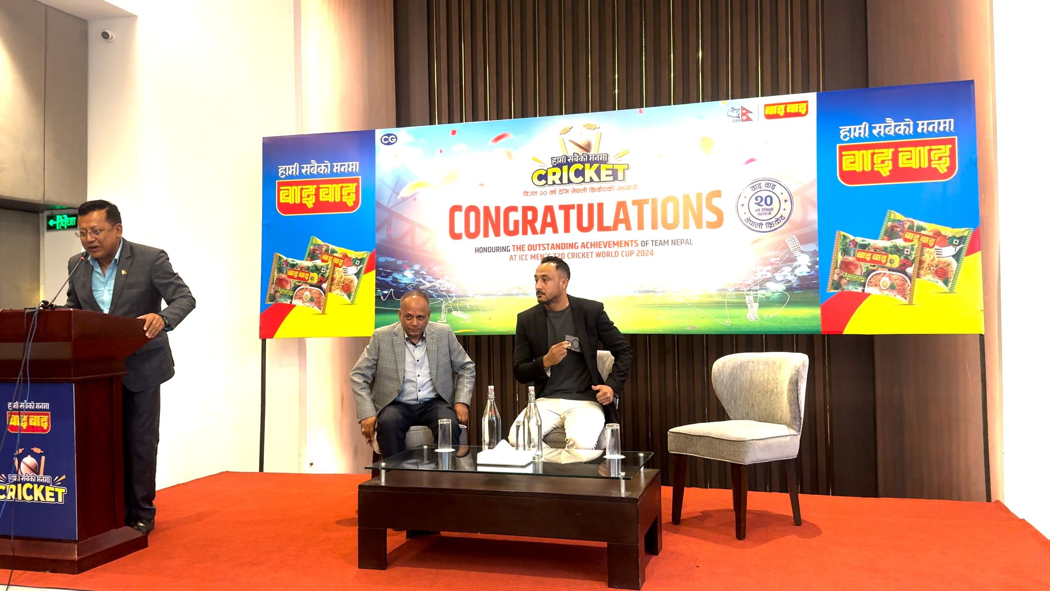 काठमाडौं: चौधरी ग्रुप मातहतको सी जी फुड्स नेपाल लिमिटेडद्वारा उत्पादीत सर्वाधिक लोकप्रिय वाइ वाइ चाउचाउले नेपाल क्रिकेट संघ (क्यान) लाई १० लाख रूपैयाँ आज हस्तान्तरण गरेको छ । आईसिसि टि-२० विश्कपमा सहभागी खेलाडीलाई प्रोत्साहन स्वरुप सी जी फुड्सले गरेको घोषणा अनुसार उक्त रकम हस्तान्तरण गरिएको हो । नेपाल राष्ट्रिय टिम टी-२० विश्वकपमा सहभागी बनिरहदा खेलाडीहरूलाई प्रोत्साहन स्वरुप वाङ्ग वाइले प्रत्येक रनका लागि रू. १ हजार, प्रत्येक चौकाका लागि रू. ८ हजार, प्रत्येक छक्काका लागि रू. १२ हजार उपलब्ध गराउने घोषणा गरेको थियो । त्यसैगरि प्रत्येक विकेटका लागि रू १५ हजार, प्रत्येक अर्धशतक वापत रू. ५० हजार, प्रत्येक शतक वापत रू. १ लाख र नेपाली टिमको प्रत्येक जितमा रू. १ लाख ५० हजार रूपैयाँ नगद उपलब्ध गराउने पनि घोषणा गरेको थियो। त्यसैगरि सुपर आठमा पुगेमा राष्ट्रिय टिमका लागि रू ३० लाख उपलब्ध गराउने वाइ वाइको घोषणा थियो ।