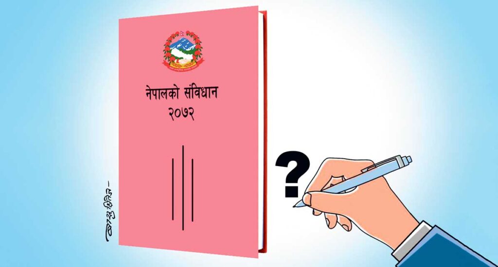 काठमाडौँ:पारिवारिक, आर्थिक, न्यायिक, ज्ञात–अज्ञात जेसुकै कारणले भए पनि अहिले देशका दुई ठूला दलहरू मिलेर सरकार बनाउने अवस्था आउँदा हामीले देशमा स्थायित्व आउने आधारमा सकारात्मक नै मान्नुपर्ने हुन्छ । अझ मिडियामा आएजस्तो ती दलहरूले साँच्चै संविधान संशोधन नै गर्ने सम्झौता गरेका हुन् भने त यो कदम झनै स्वागतयोग्य नै मान्नुपर्छ ।वास्तवमा देशी–विदेशी, राजनीतिक, कूटनीतिक, व्यापारिक, अनेक निकायहरूको स्वार्थ–आग्रह मिसिएर बनेको वर्तमान संविधान ‘ऊँट’ जस्तै भएको छ, कुनै पनि सिद्धान्तको जगमा नअडिएको अस्तव्यस्त छ ।