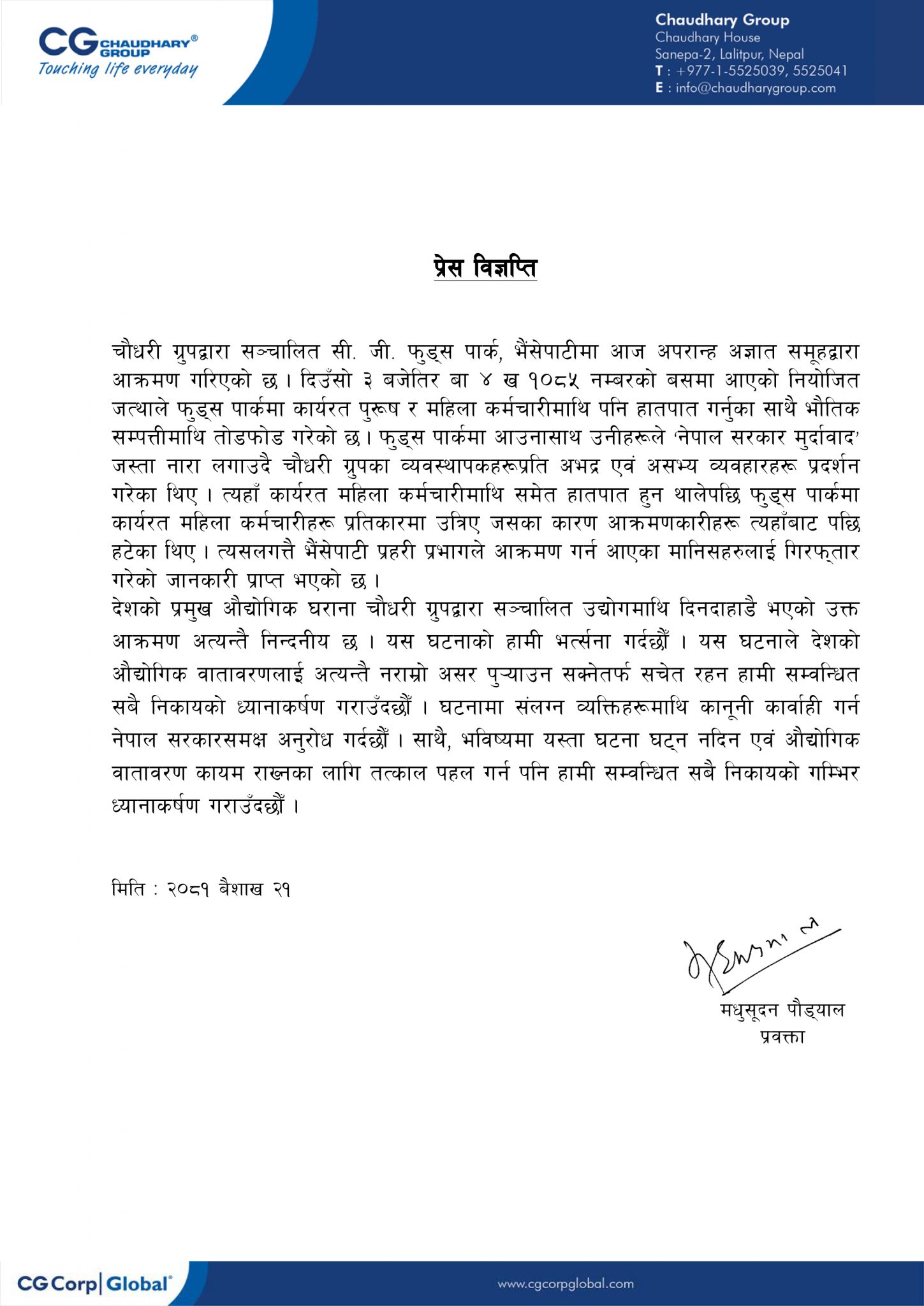 सीजी फुड्स पार्कमा आक्रमण गरेको आरोपमा १७ महिलासहित २२ जना पक्राउ